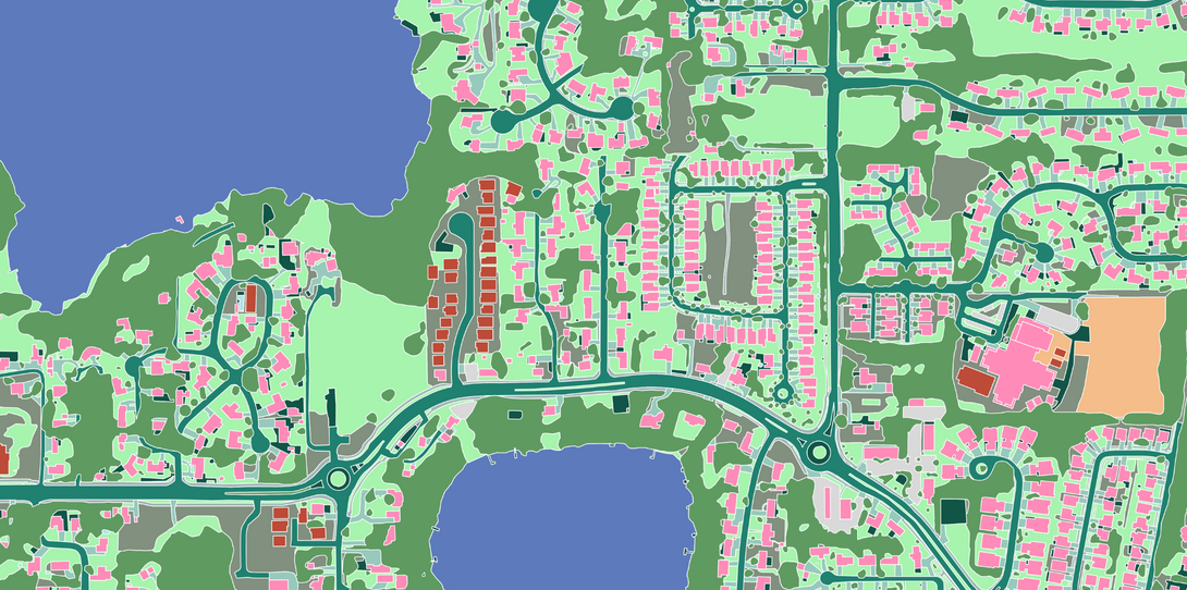 Foundational 3D & 2D land cover and land use vector map data for geospatial visualization, analytics, and decision-making.